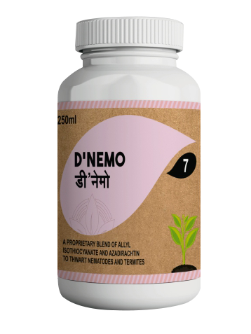 D’Nemo is IEC’s Proprietary blend of natural Allyl Isothiocynate (from mustard oil) and Azadirachtin (from neem extract) in a water soluble form.